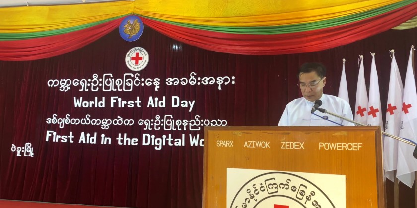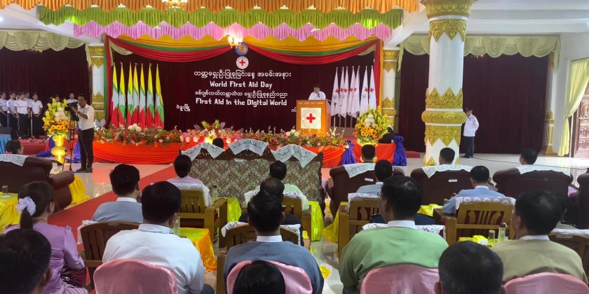 A ceremony commemorating World First Aid Day was held in Bago on Saturday. Chief Minister U Myo Swe Win attended the event and delivered a speech, emphasizing the critical role of first aid in saving lives during accidents, natural disasters, and conflicts that occur worldwide on a daily basis.