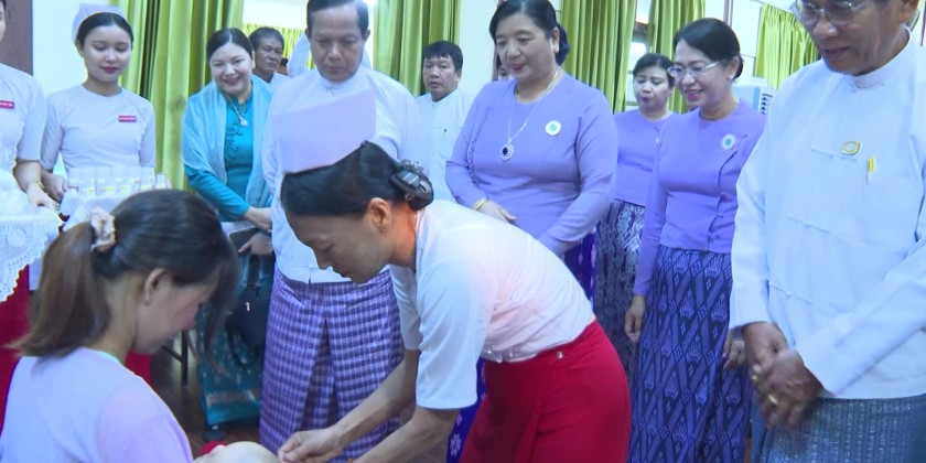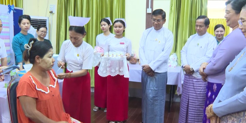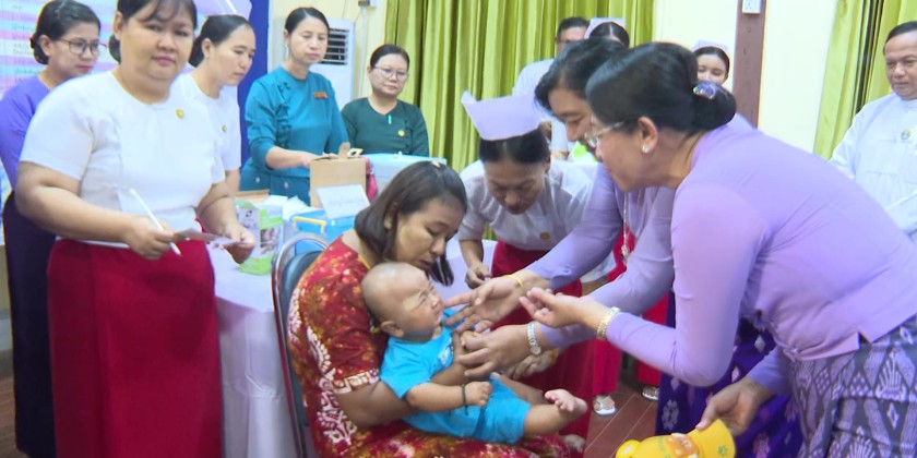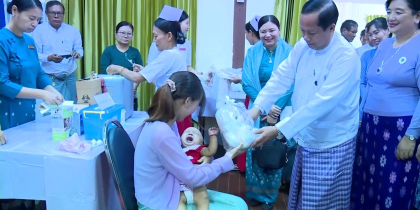The ceremony for World Immunization Week 2026 was held on April 28 at the Ayar Shwe Wa Hall in Pathein. The event was attended by Region Chief Minister U Aye Kyaw, who delivered the opening address.