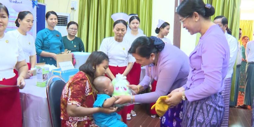 Afterward, the Region Chief Minister and his wife, along with other officials, observed the administration of vaccines to pregnant women and young children. They also presented commemorative gifts to the children and prenatal vitamins to the expectant mothers.