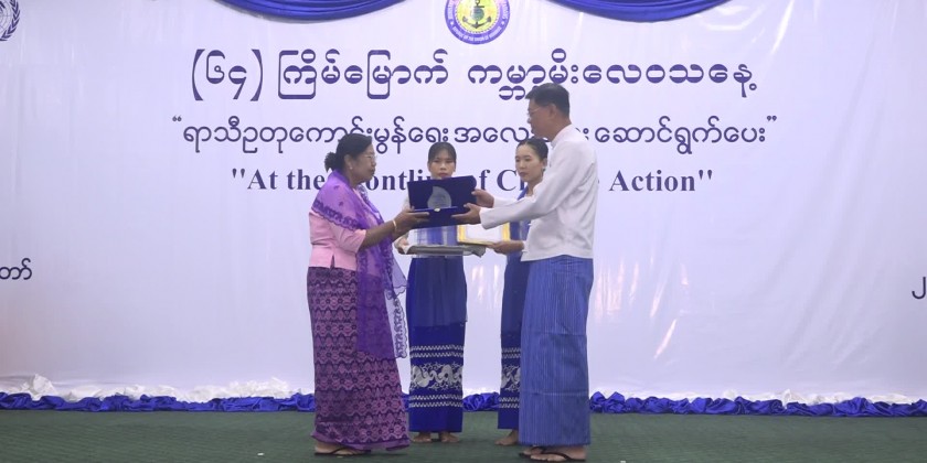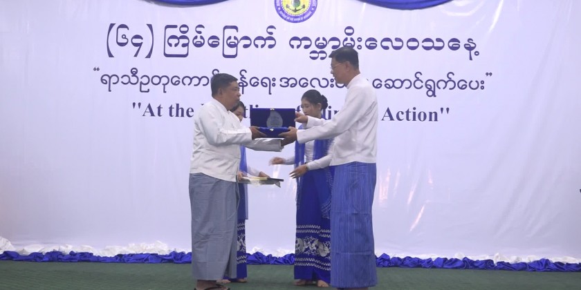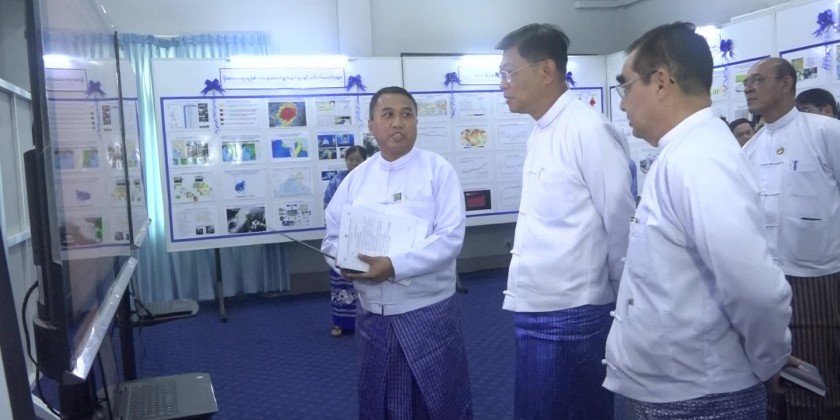 Deputy Prime Minister and Union Minister General Mya Tun Oo awarded the first, second and third prizes to winners who participated in Article competition commemorating the World Meteorology Day. Later, Deputy Prime Minister and invited guests viewed around the commemorative booths.