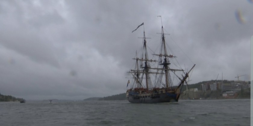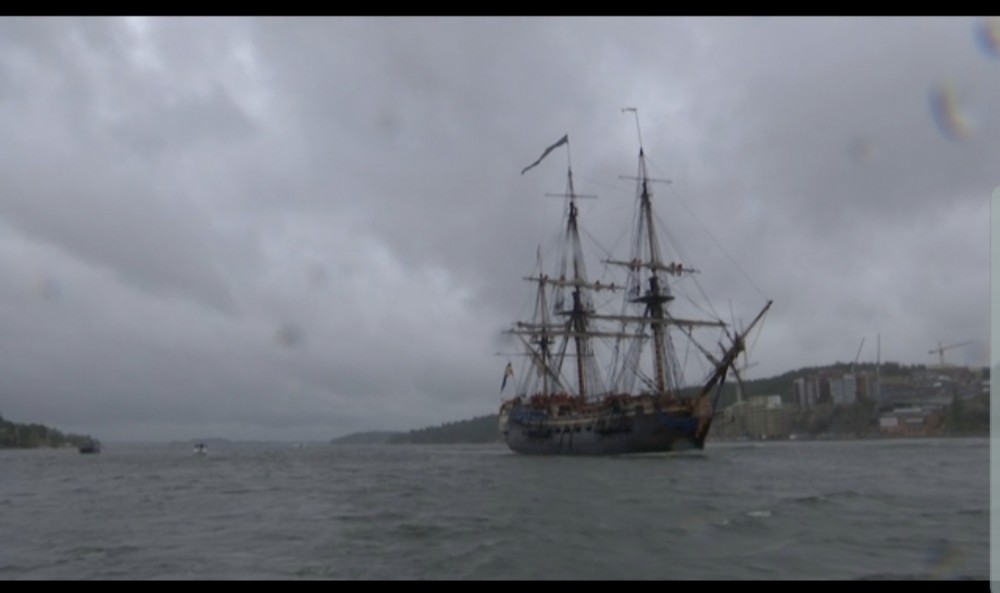A full-size replica of an 18th century, three-mast, ocean-going wooden tall galleon that sank in 1745 entered the Swedish capital Stockholm on Thursday ahead of a journey to Asia.