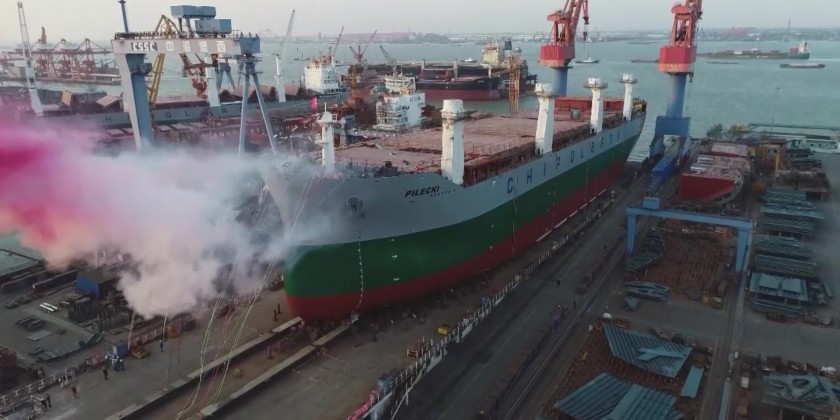 A crane ship with the world's largest deadweight tonnage was delivered on Wednesday to its owner, the Chinese-Polish Joint Stock Shipping Company (Chipolbrok).