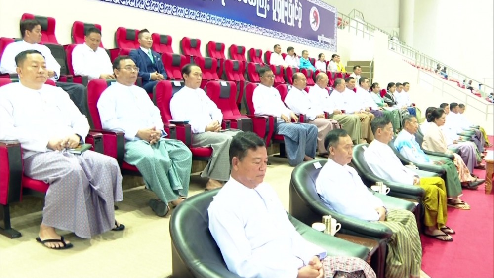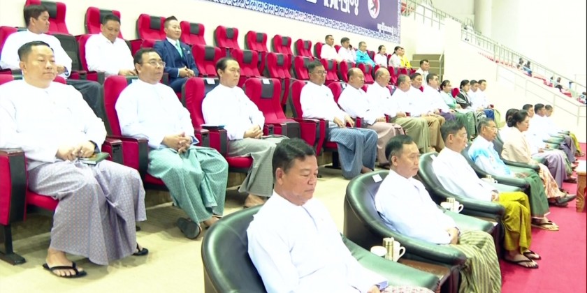 The 2023-2024 Regions and States Wushu Competition final match and prize awarding ceremony was held at Wunna Theiddi Stadium (b) in Nay Pyi Taw in the morning on 11th March and attended by the SAC members Daw Dwe Bu, Porel Aung Thein, Mann Nyein Maung, Dr. Hmu Htan, Dr. Ba Shwe, Khun San Lwin, U Shwe Kyein and U Yan Kyaw, Union ministers, Deputy Ministers, Departmental officials.