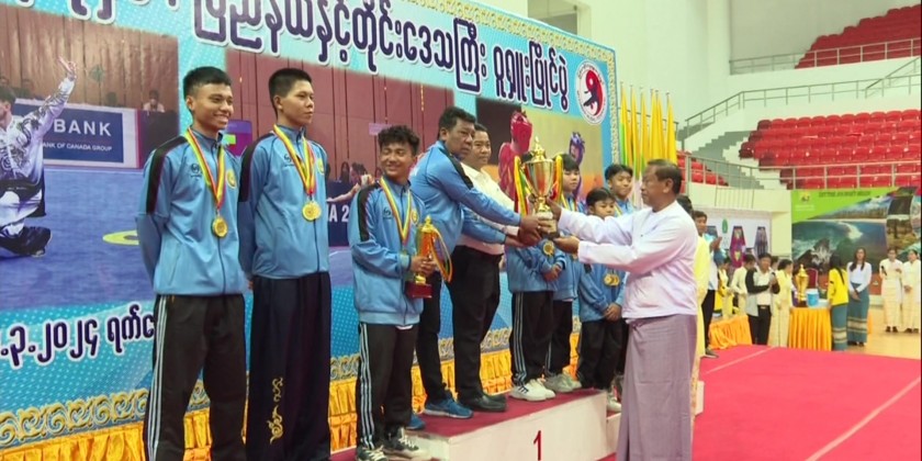 At the prize awarding ceremony, Deputy Minister U Ye Tint and U Htin Kyaw Thu awarded the first, second and third prices to the winners of dual women and men attack competition, Union Minister Jeng Phang Naw Taung and Dr. Soe Win awarded the winners of men and women aged 12 years and above, Union Minister U Min Thein Zan to the winers of men (60 Kilo) under 25, Union minister U Ko Ko Hlaing the winers of men (70 Kilo) under 25, SAC members U Yan Kyaw, U Shwe Kyein, Khun San Lwin to the winners of men (75 Kilo), women (45 Kilo) and Men men (48 Kilo) under 25, Dr. Hmu Htan and Dr. Ba Shwe to the winners of best athletes, Mann Nyein to the women championship winner Taninthayi Region team and men championship winner of Kayin State team in Sanshou event, Poral Aung Thein to the women championship winner Mandalay Region team and men championship winner of Yangon Region team in Taolu event.