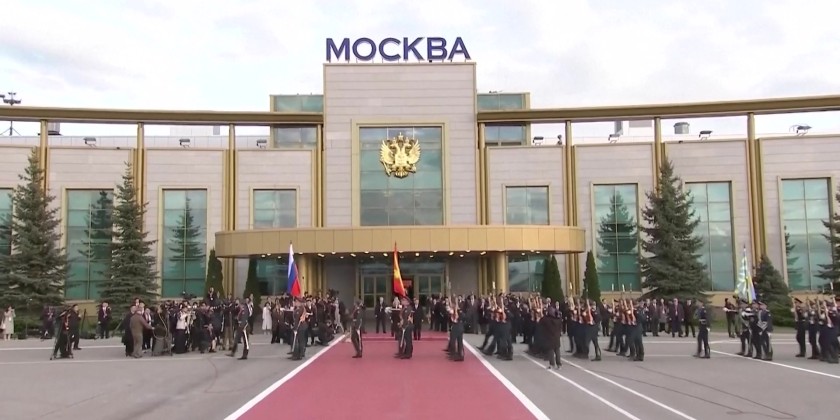 The Russian side held a welcome ceremony at the airport, which saw a military band play the national anthems of both China and Russia before Xi reviewed the guard of honor and watched a march-past. Xi delivered a written statement upon his arrival, in which he extended sincere greetings and best wishes to the Russian government and people on behalf of the Chinese government and people.
