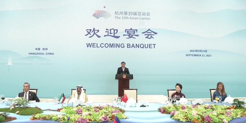 Chinese President Xi Jinping and his wife Peng Liyuan on Saturday held a welcome banquet at the Xizi Hotel for the guests attending the opening ceremony of the 19th Asian Games in the eastern Chinese city of Hangzhou.