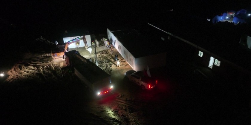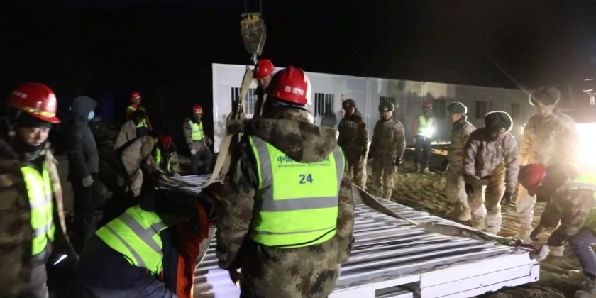 In Gurong village, the area most severely affected by the earthquake, soldiers from the Chinese People’s Liberation Army Xizang Military District have been working alongside construction workers throughout the night on Thursday to build portable cabins.