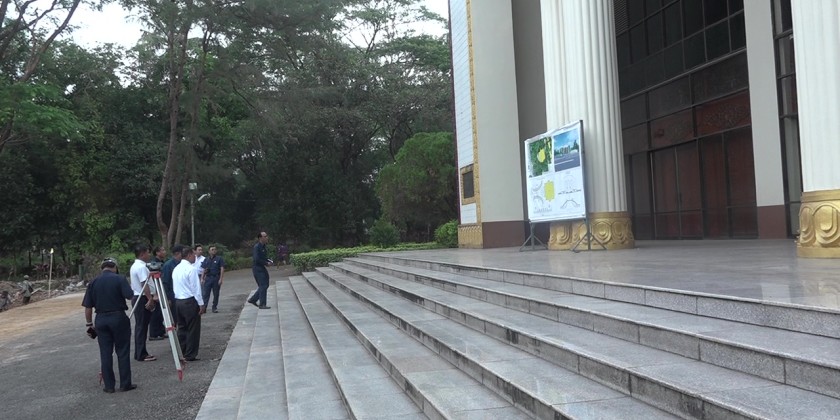 At the Diamond Jubilee Hall area in Kamayut Township, the Mayor inspected the ongoing road works carried out by the Engineering Department (Roads & Bridges) and instructed for timely completion of the tasks. They then visited City FM Radio in Bahan Township to inspect building maintenance and daily broadcasting operations.