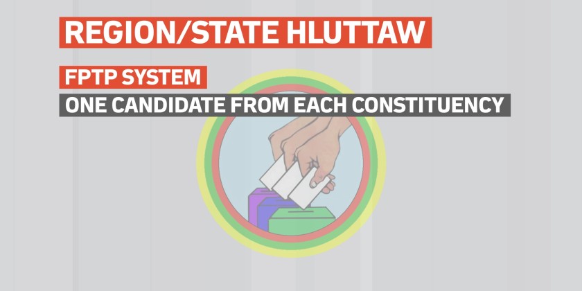 For the Region Hluttaw, one candidate will be elected from each constituency under the First-Past-the-Post system. Under the Mixed-Member Proportional system, 13 candidates will be elected from Constituency Number One, eight candidates each from Constituencies Numbers Two and Three, 10 candidates from Constituency Number Four, and three candidates each from Constituencies Numbers Five and Six.