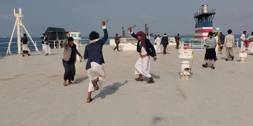 For about a dollar per trip, male-only groups of visitors can board wooden boats five times a week to the hijacked car carrier which the Huthis hail as a trophy in their fight in solidarity with the Palestinians.