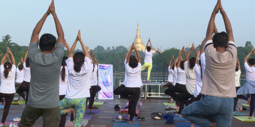 A total of 14 yoga sessions are scheduled across prominent sites in Yangon and Nay Pyi Taw, such as Kandawgyi Gardens, People’s Park, Mahabandoola Park, the Maravijaya Buddha Park and Thatta Thattaha Maha Bawdi Pagoda.