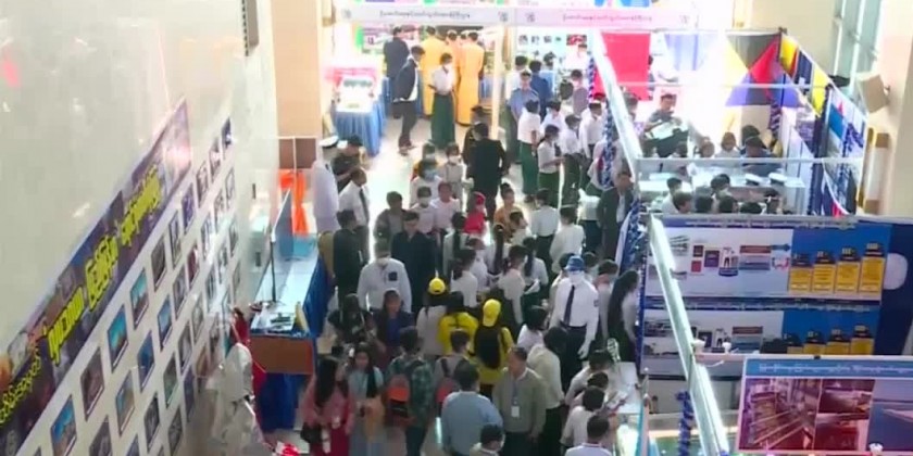 Grade-7 Student, No.2 B.E.H.S (Pyinmana Township), Aung Myo Kyaw said "I observe computers, information technology, and Petroleum and natural gas sections. We learn only theoretical at school but here we can learn both theoretically and practically. So, I think that is very helpful for my study."