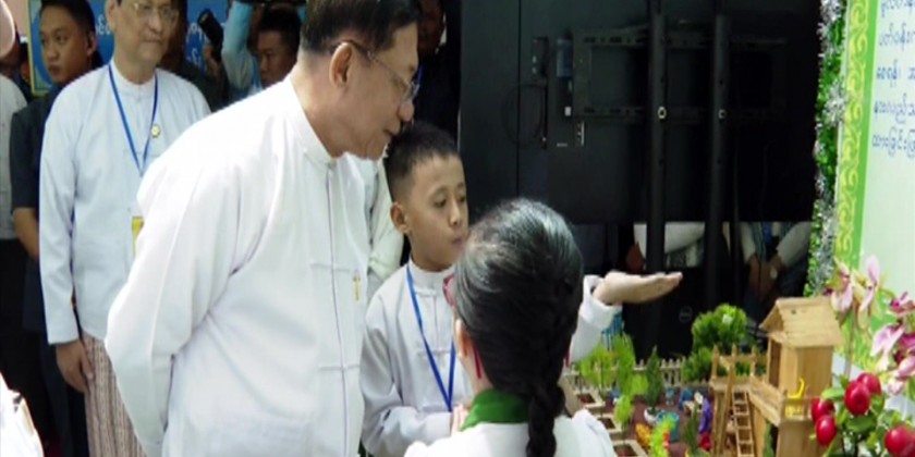 Chairman of the State Administration Council Prime Minister Senior General Min Aung Hlaing opened the exhibition by pressing auto button. Next, the artistes from the Ministry of Religious Affairs and Culture performed with the song “Youth and Literary and Fine Arts”.