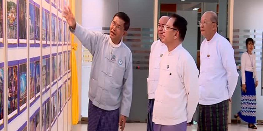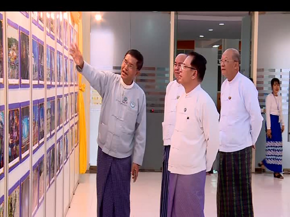 The Union Ministers explored the "Hla Pa Thayar Pyay Myanmar" booth, admiring artistic photos depicting traditional customs and natural landscapes. They also toured ministry booths, observing displays of ongoing activities. The Union Ministers supported student youths participating in games and quiz programs.