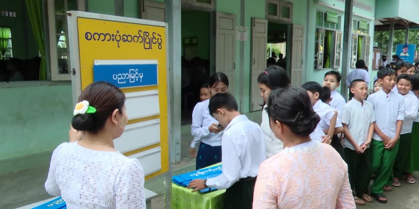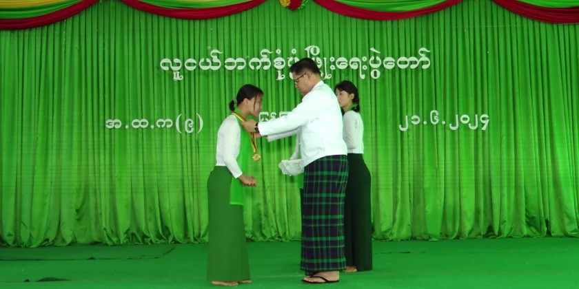First, the students from No (9) Basic Education High School performed the ethnic traditional dances and the State Chief Minister gave an opening remark. Next, the Chairman of Kachin State Libraries Foundation clarified the purposes of organizing Youth All-round Development Festival and the Chief Minister and State Minister for Social Affairs awarded the prizes and cash of honor to the winners in the High school level essay writing contest, dance groups and bugle and corps and enjoyed the performing dances of Grade-4 students.