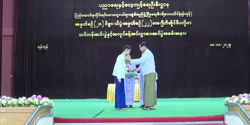 The graduation and job appointment letter presentation ceremony for the 21st batch of Bachelor of Arts and Bachelor of Science courses and the 22nd batch of A.G.T.I. Diploma course of the Nationalities Youth Resource Development Degree College (Yangon) was held on November 10 in the college's Convocation Hall.