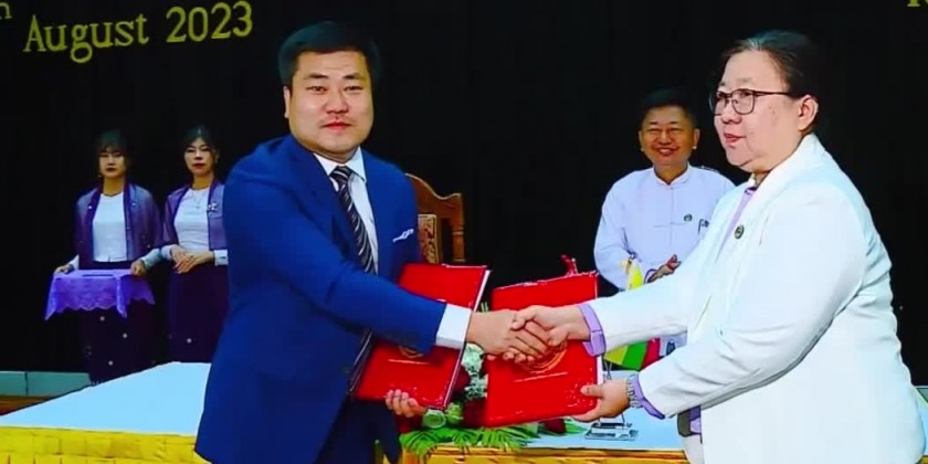 The signing ceremony of agreement on Yuntianhua scholarship award between Yezin Agricultural University and Yuntianhua Co., Ltd of Yunnan Province was held in conjunction with offering of scholarship at the convocation hall of the University.