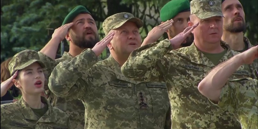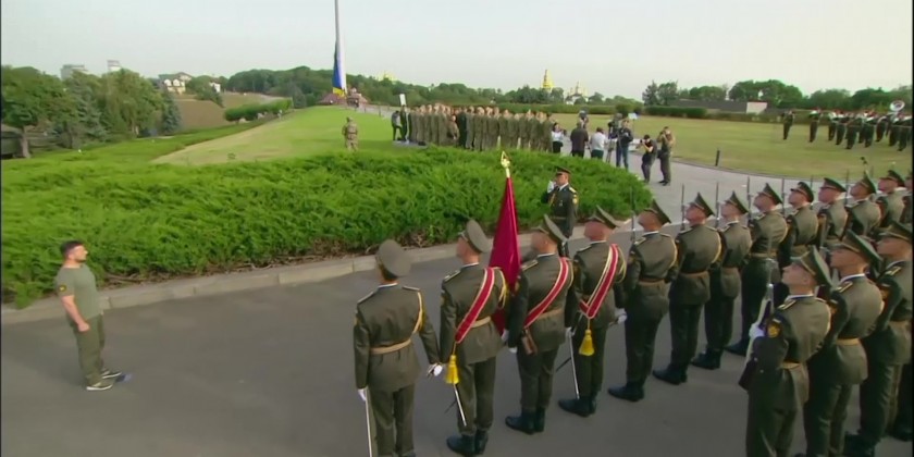 Ukrainian President Volodymyr Zelenskyy attended the raising of Ukraine's flag at the memorial complex in Ukraine to mark National Flag Day on Tuesday.