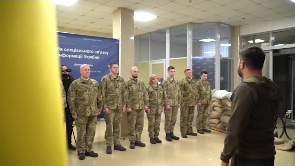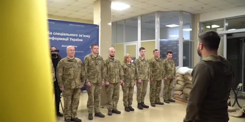 Ukrainian President Volodymyr Zelenskyy met with military personnel of the State Service for Special Communications and Information Protection on Saturday and presented them with state awards.