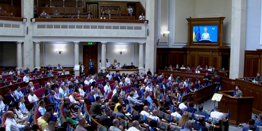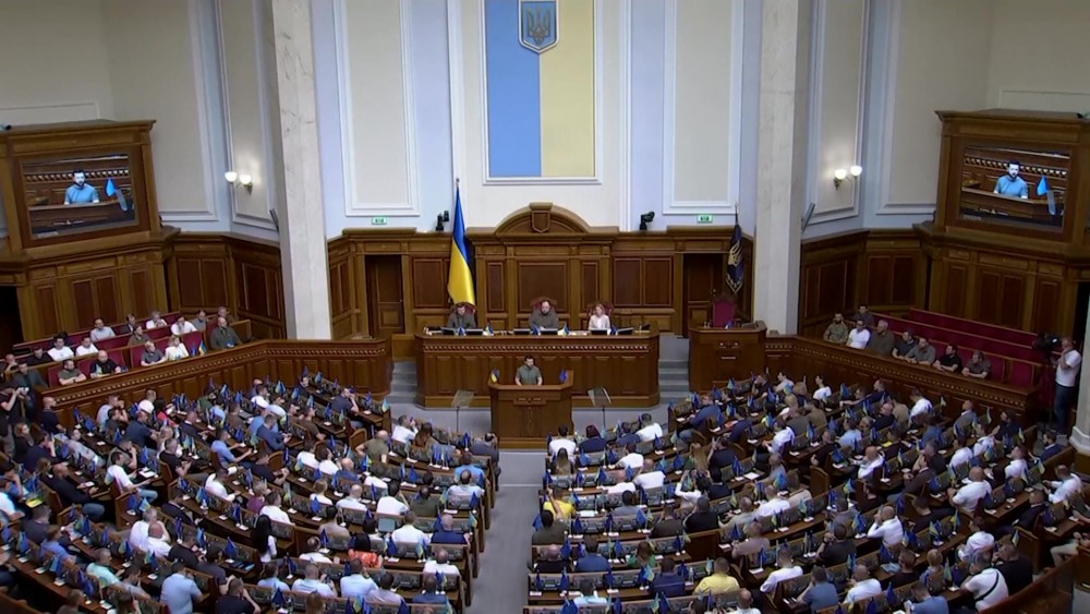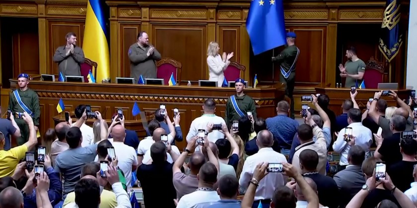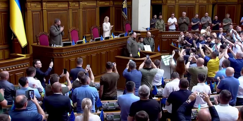 Ukrainian President Volodymyr Zelenskyy on Friday signed a joint statement signaling the unity of the country's branches of government to seek EU membership. Ukraine's Parliament Chairman Ruslan Stefanchuk, and Prime Minister Denys Shmyhal also signed the agreement.